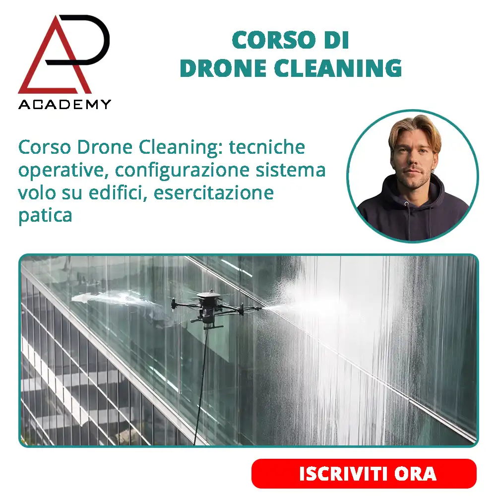 Il corso di Drone Cleaning è progettato per fornire una formazione pratica e immediatamente applicabile nel settore della pulizia tecnica in quota con droni. Il percorso formativo prevede una prima parte teorica, fondamentale per comprendere i principi operativi del drone cleaning, seguita da una parte pratica sul campo. Durante il corso verranno illustrate anche le procedure di pianificazione dell’intervento, la gestione operativa delle attività e le opportunità professionali offerte da un settore in forte crescita.