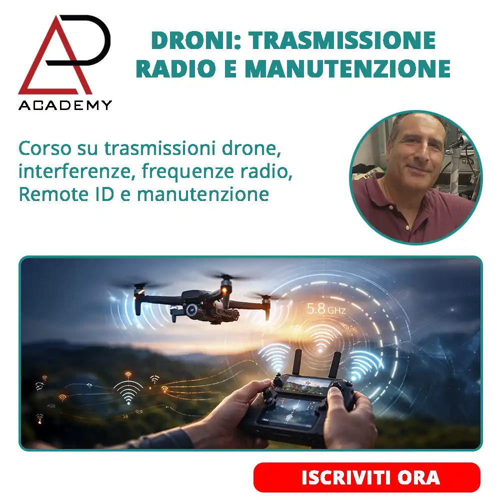 Il corso offre una panoramica completa sulle tecnologie di trasmissione utilizzate nei droni, approfondendo il loro funzionamento, le principali frequenze radio e l’interazione con l’ambiente durante le operazioni di volo. Durante la lezione verranno analizzati anche i fattori che possono influenzare la qualità del segnale, come interferenze, ostacoli e disturbi elettromagnetici.